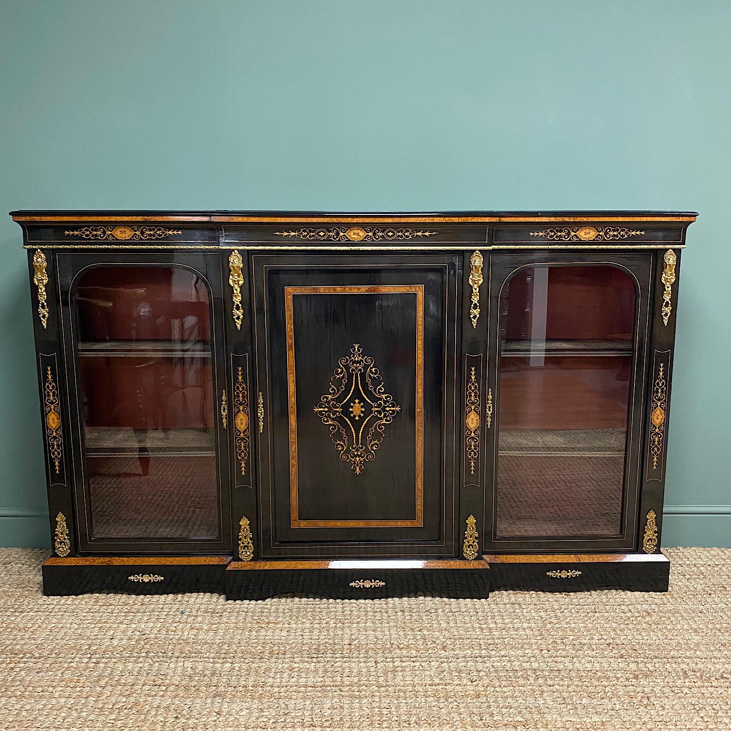 Stunning Ebonized Victorian Break-Fronted Antique Credenza