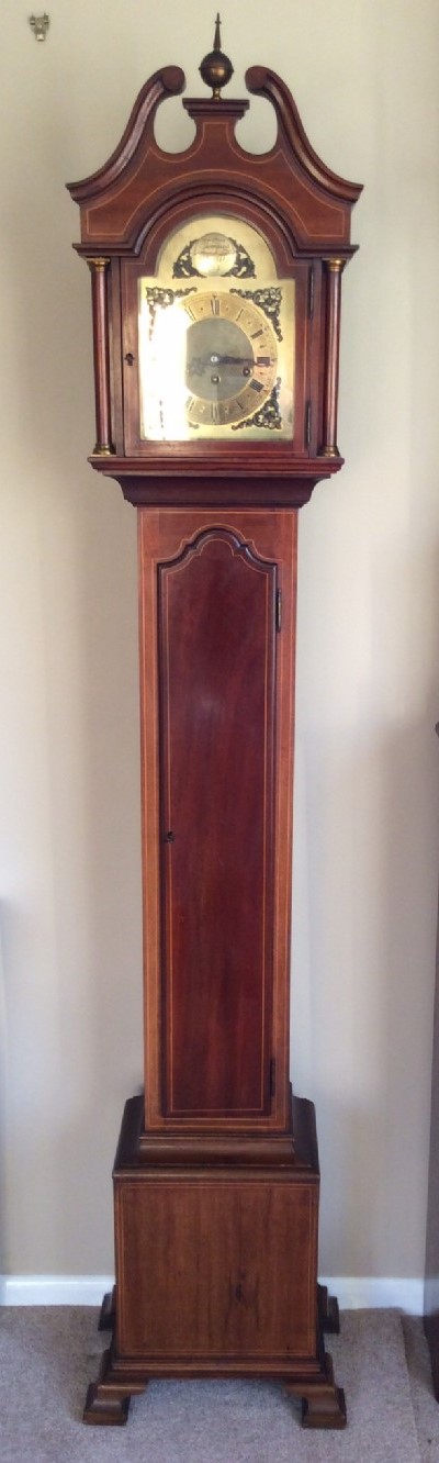 Stunning Edwardian Mahogany with String Inlay Grandmother Miniature Longcase Clock