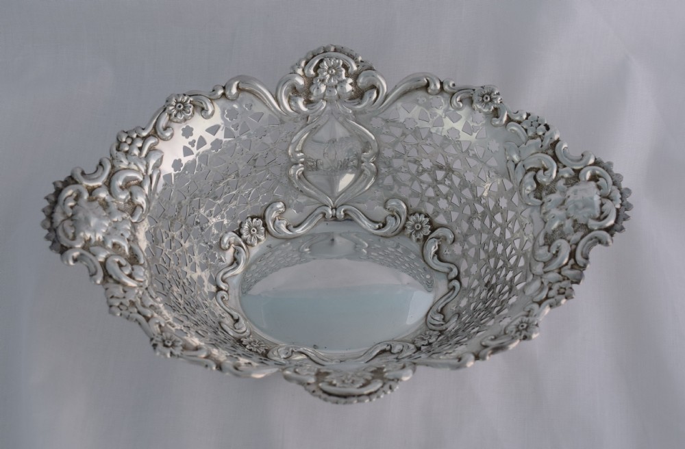 Stunning Edwardian Silver Bread Basket Chester 1902 Jay Richard Attenborough Fruit Embossed Pierced Bowl