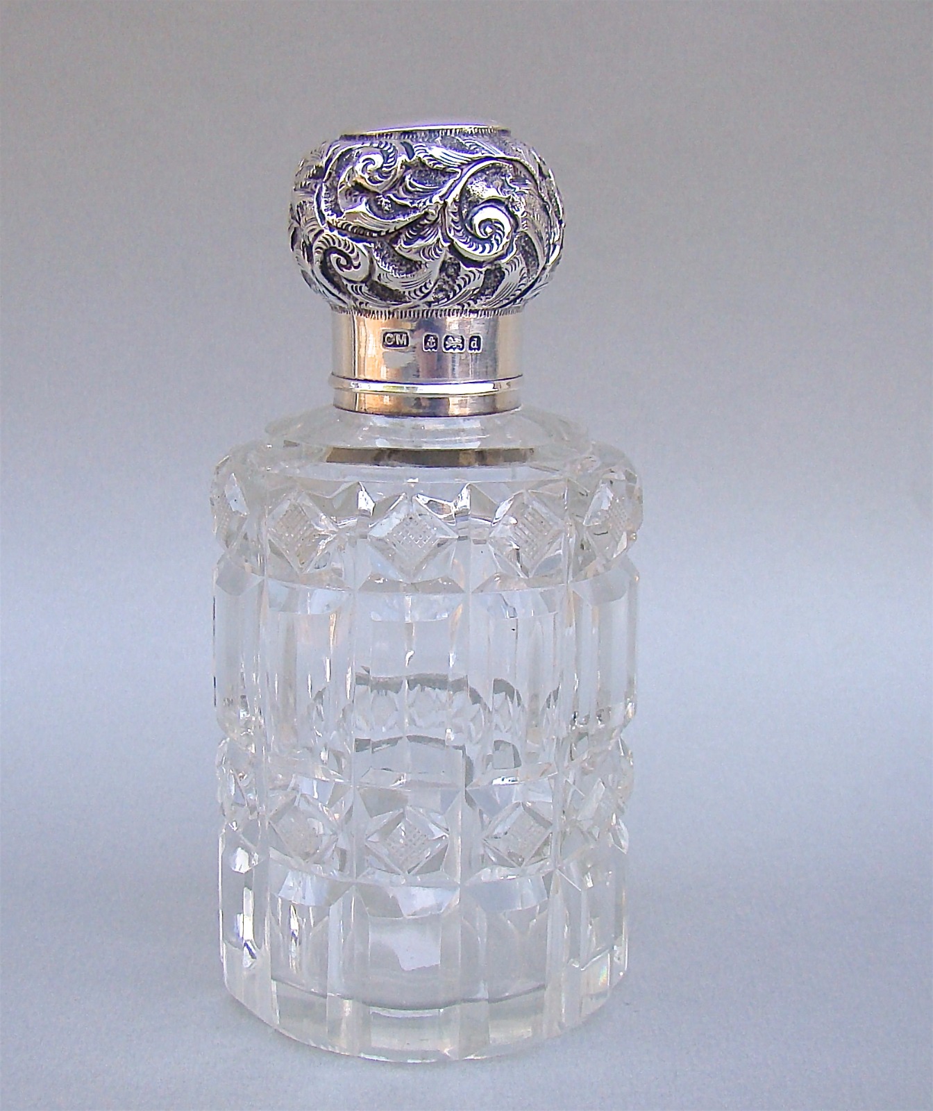 Stunning Edwardian Silver & Cut Glass Scent Bottle by Charles May, Birmingham 1903