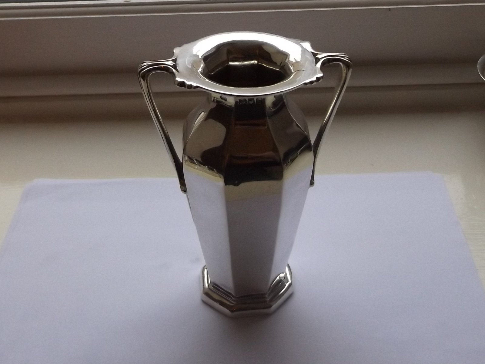 Stunning Edwardian Silver Octagonal Twin Handled Vase