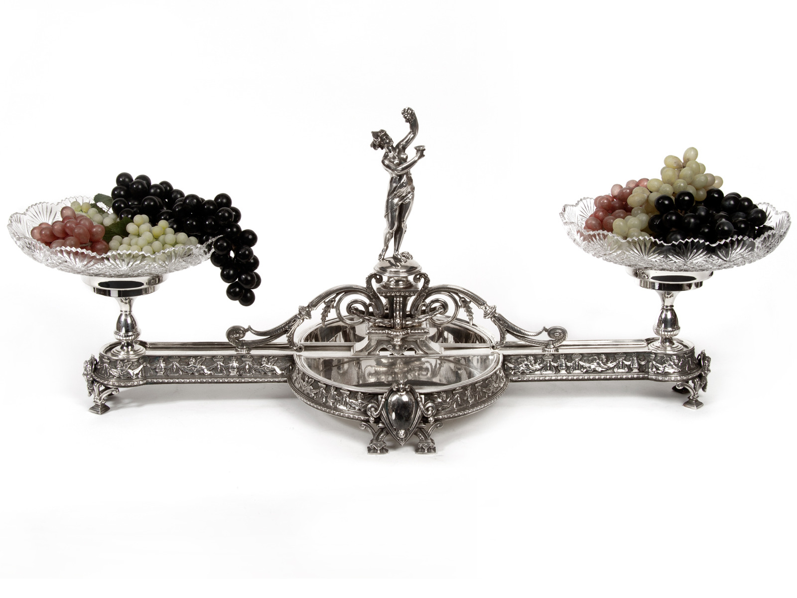 Stunning Elkington & Co Centerpiece with Classical Female Figure & Two Cut Glass Bowls (1 of 1)