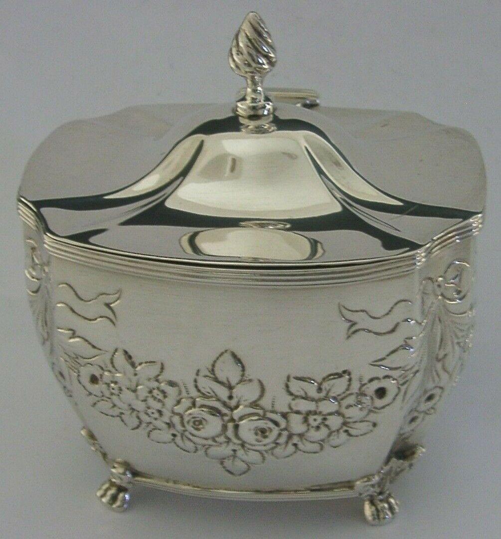Stunning English Chester Solid Sterling Silver Tea Caddy Box 1901 Antique
