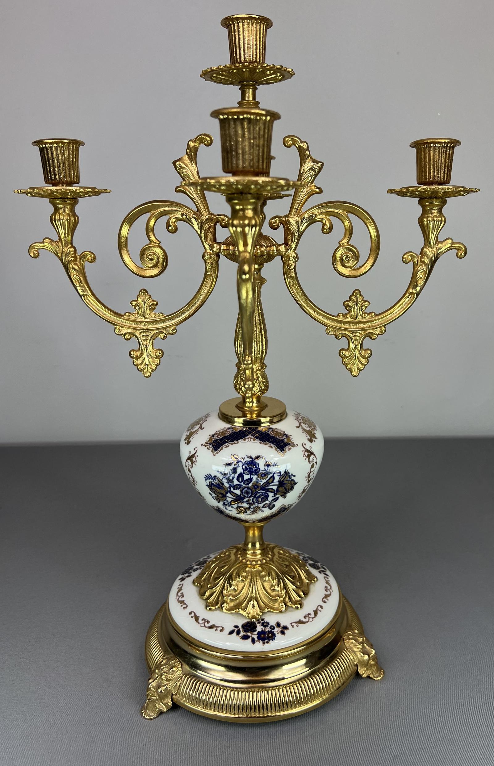 Stunning Five Arm Italian Porcelain Vintage Brass Candelabra