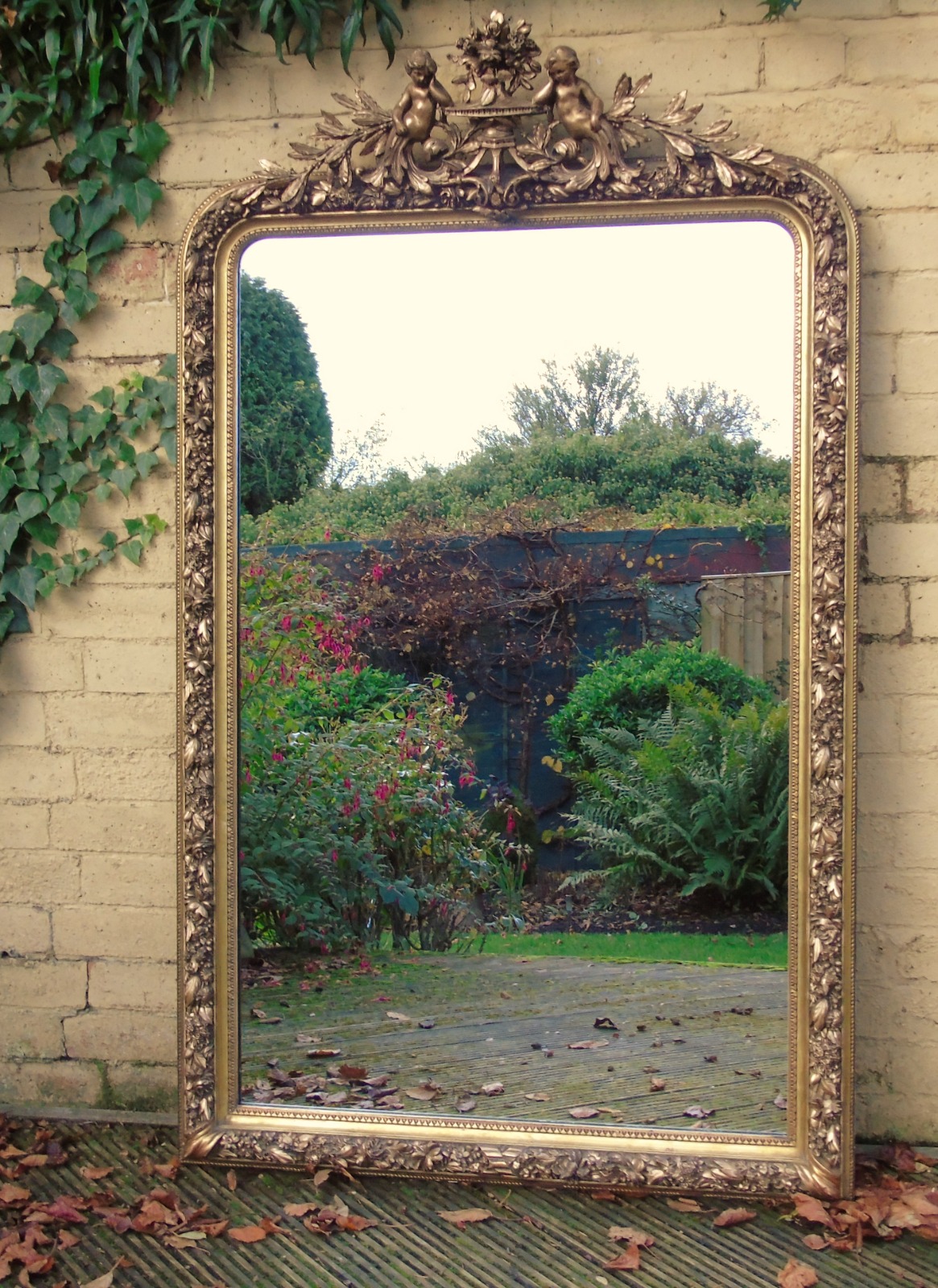 Stunning French Gilt Mirror Cherub Crest c.1870 (1 of 1)