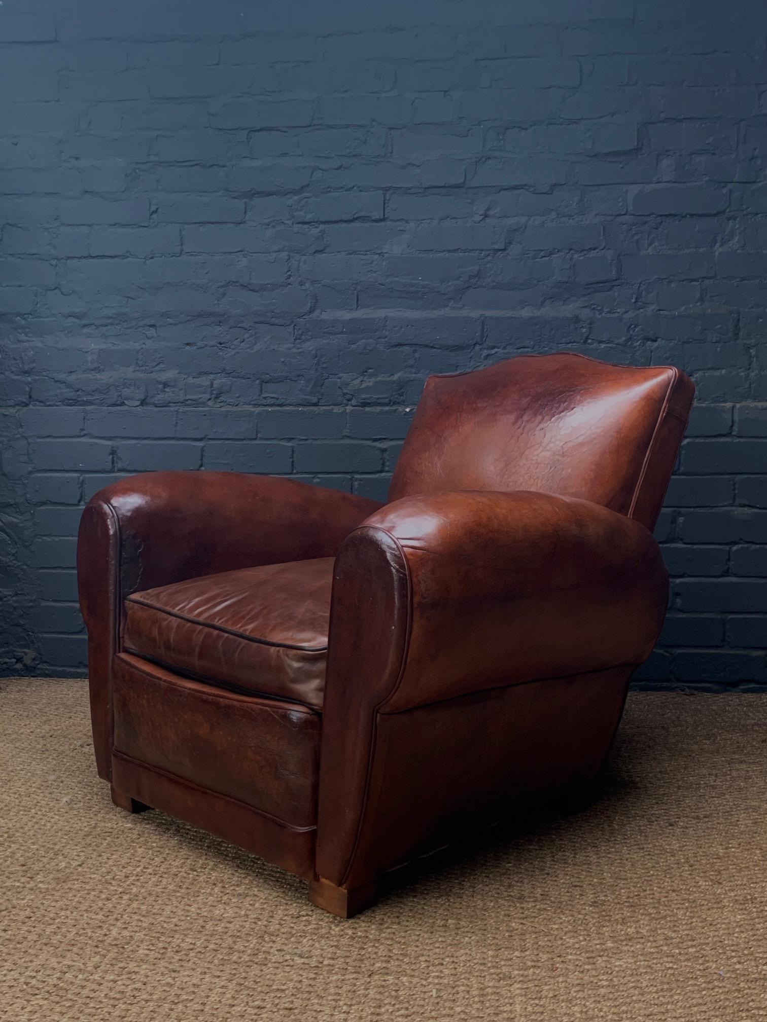 Stunning French Leather Club Chair, Havana Moustache Model with Cuban Cigar Arms c.1930