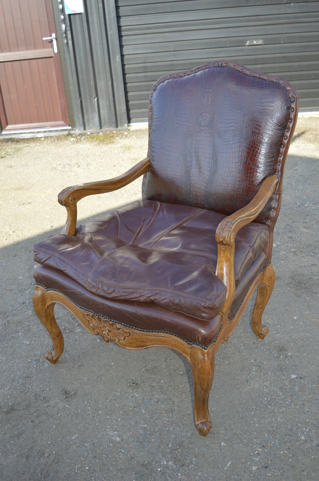 STUNNING French Leather & Crocodile Skin Louis Style Open Armchair (1 of 1)