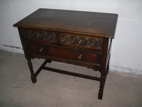 Stunning Golden Oak Carved Lowboy / Chest of Drawers / Hall Table