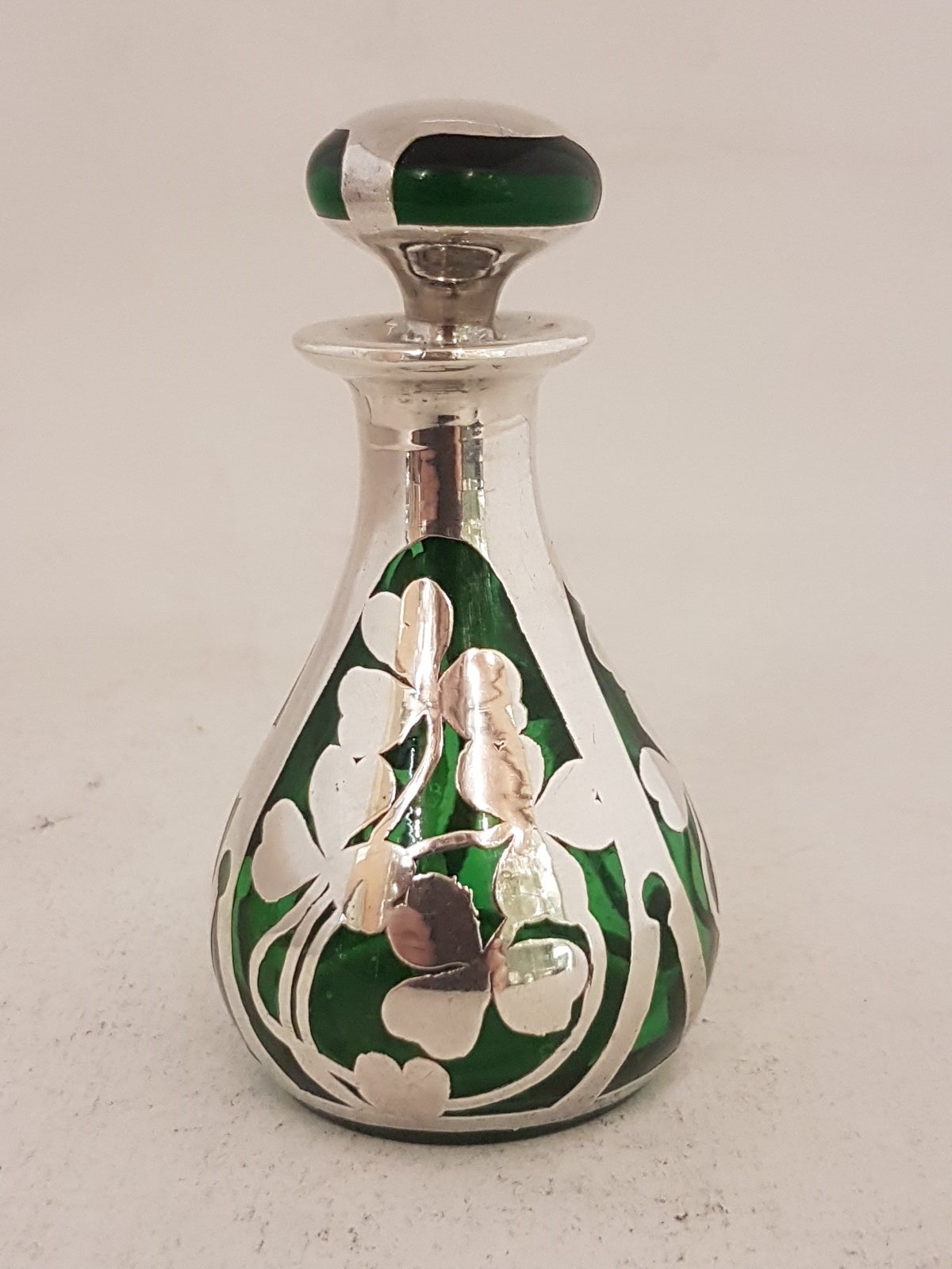 Stunning Green Glass & Silver Overlaid Scent Bottle