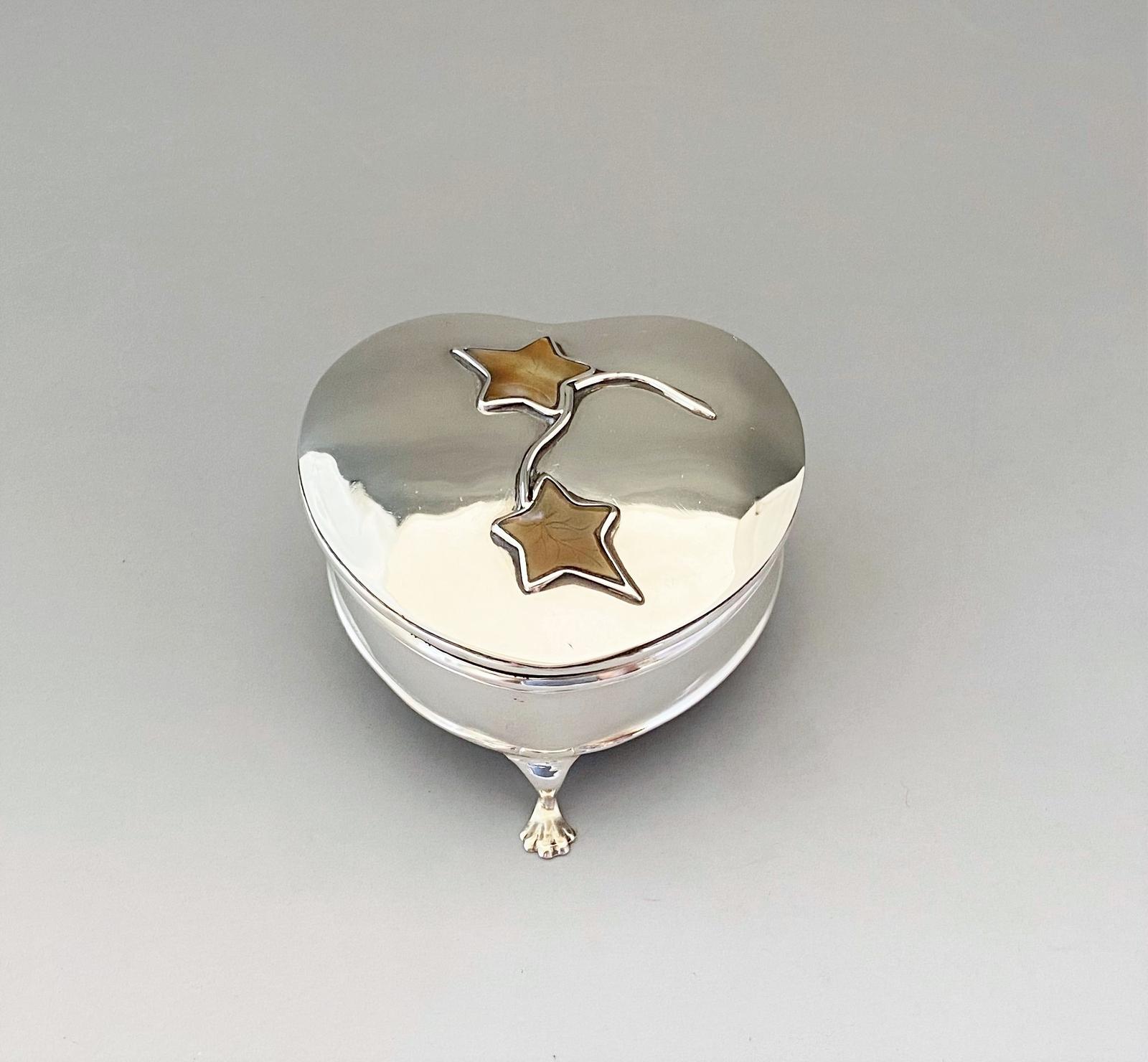 Stunning Heart Shaped Silver & Mother-of-Pearl Trinket Box (1 of 7)