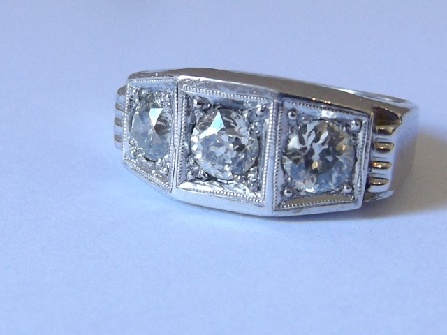 Stunning Heavy Art Deco 18ct White Gold 3 Stone 1.5ct Diamond Ring