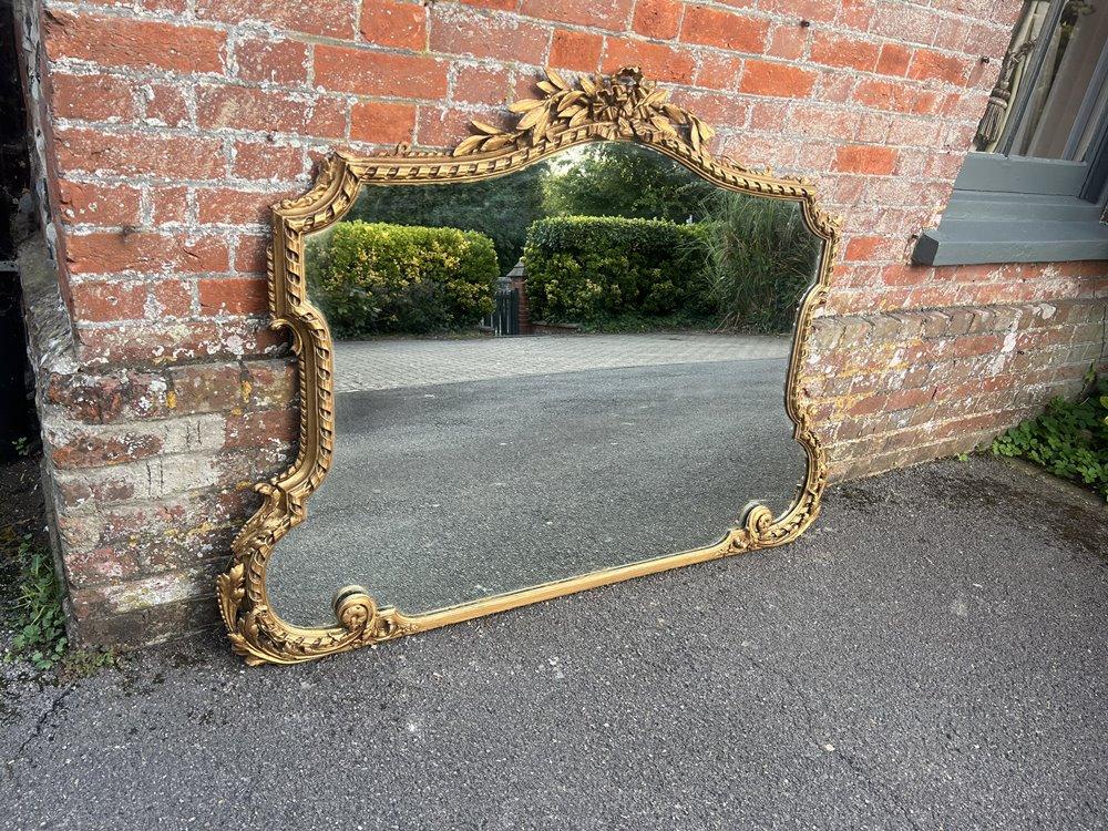 Stunning Highly Useful Size Antique English 19h Century Gilt Shaped Mirror