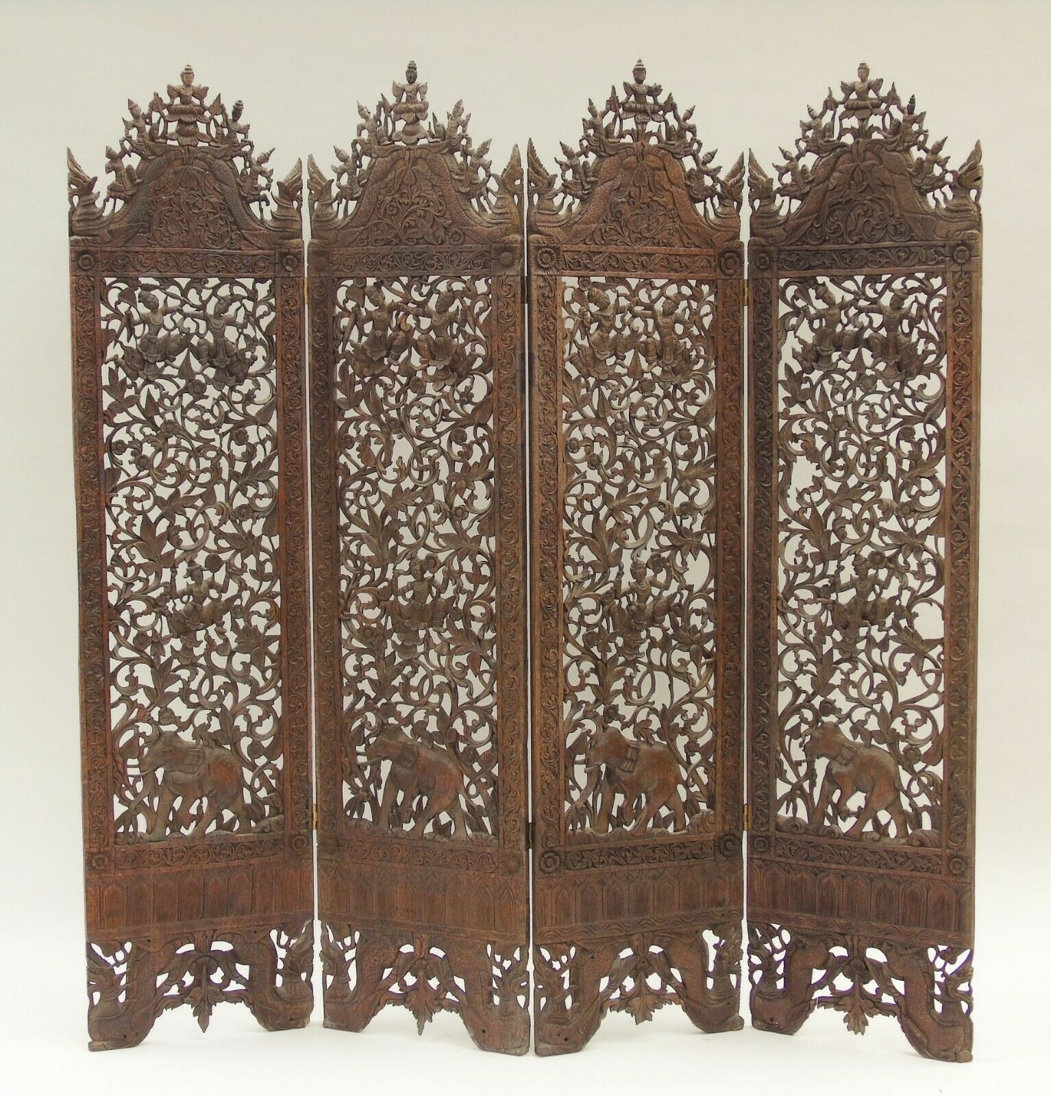 Stunning Indian Hand Carved Antique Four Fold Screen