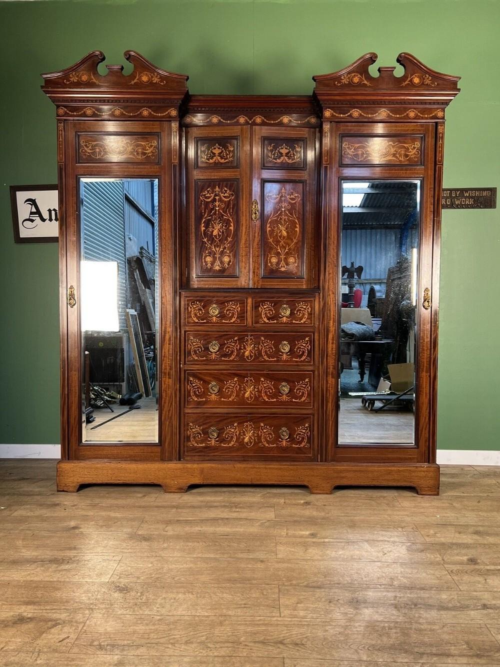 Stunning Inlaid Antique Combination Wardrobe