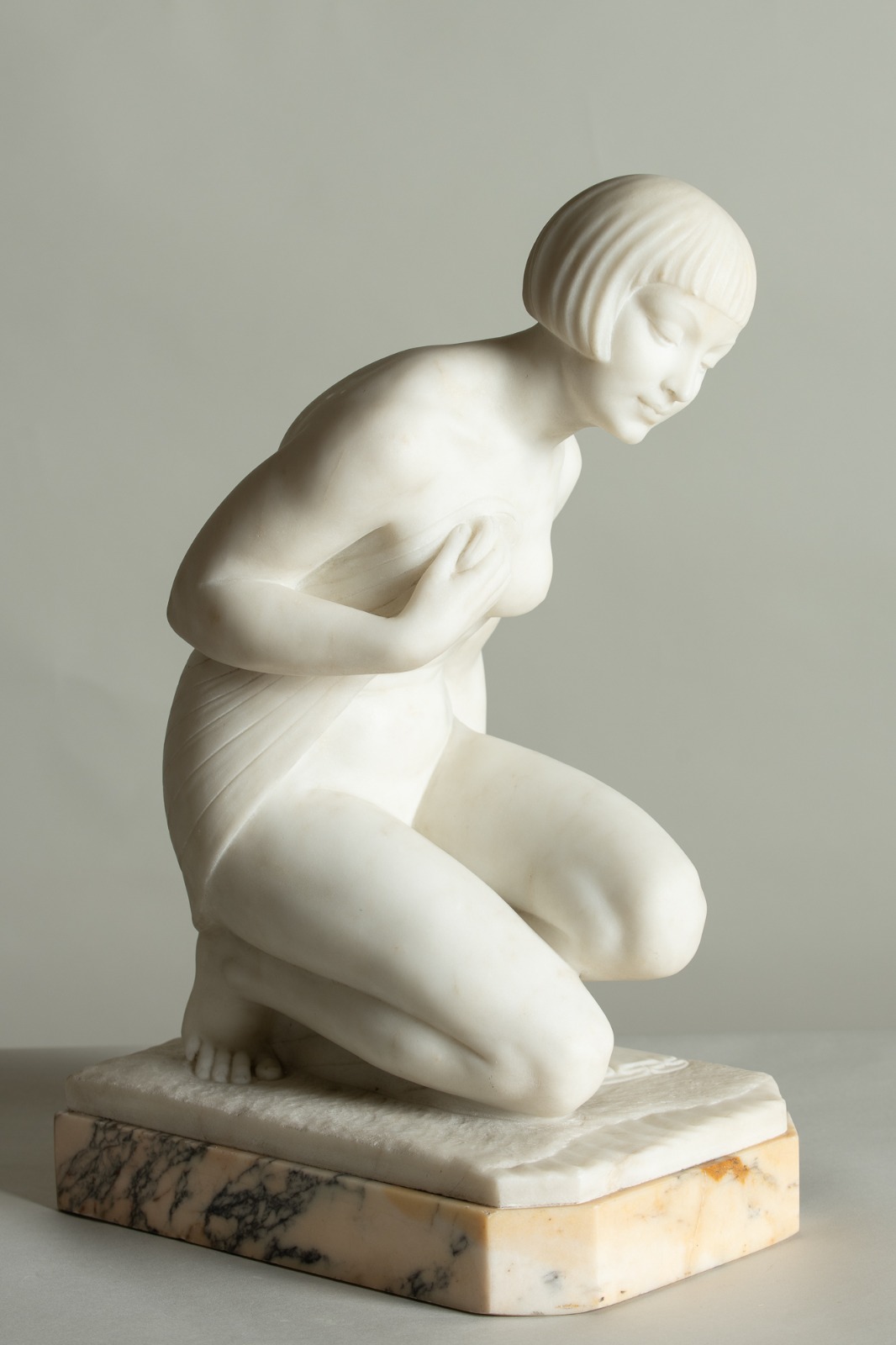 Stunning Italian Art Deco Large Carved Marble Sculpture of a Bathing Female, Signed Pugi (1 of 18)