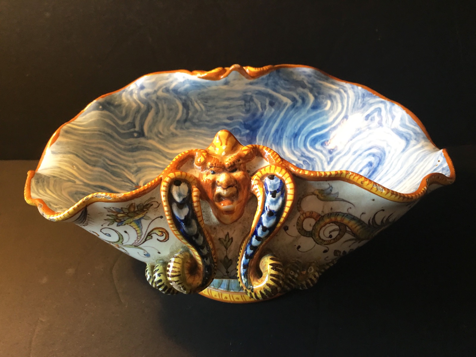 Stunning Italian Cantagalli Majolica Pedestal Fruit Bowl