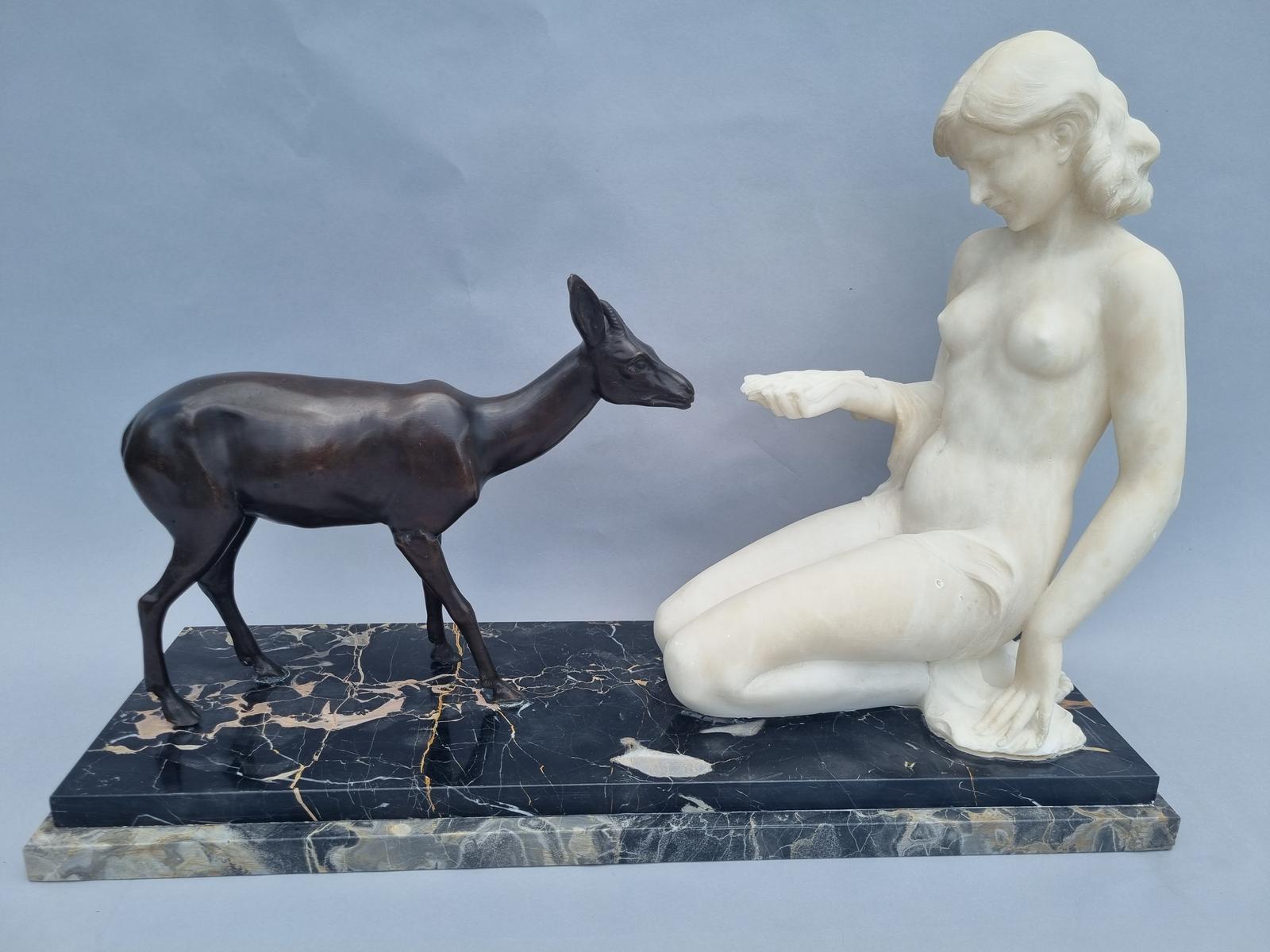 Stunning Italian Carved Alabaster & Bronze Sculpture - Signed A.Saccardi (1 of 12)