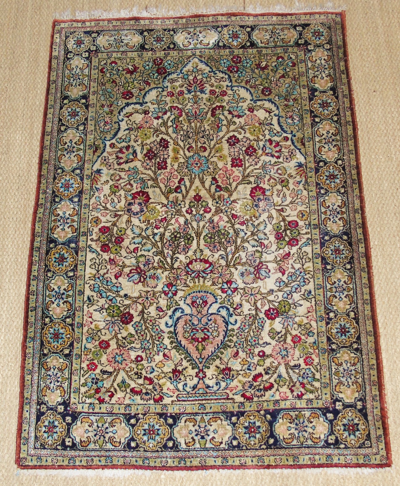 Stunning Kashmir Silk Prayer Rug with Vase of Flowers Design (1 of 7)