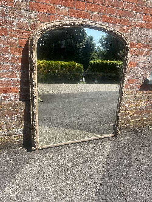 Stunning Large Antique English 19th Century Carved Wood & Gesso Arched Top Painted Overmantle Mirror