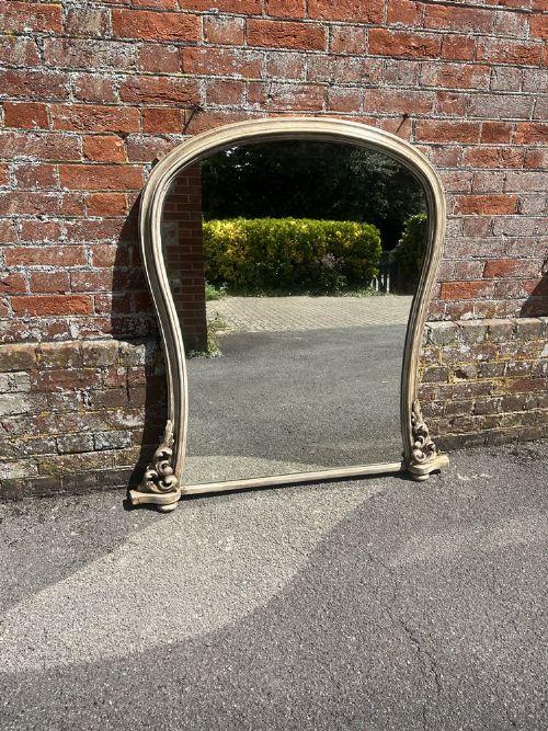 Stunning Large Antique English 19th Century Carved Wood & Gesso Painted Hour Glass Shaped Top Overmantle Mirror