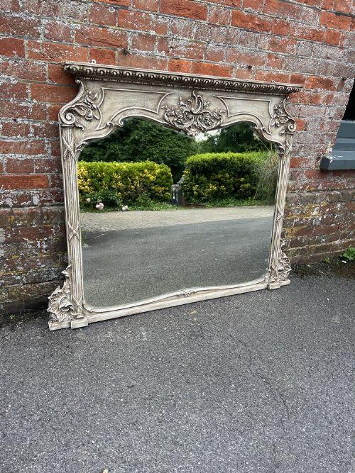 Stunning Large Antique English 19th Century Carved Wood & Gesso Painted Overmantle Mirror