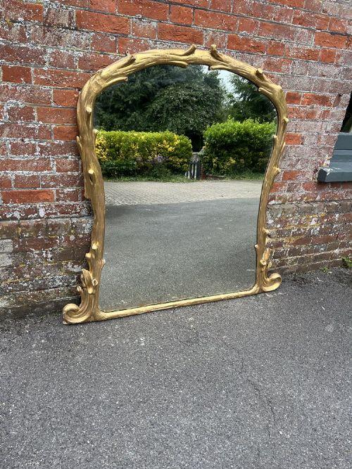 Stunning Large Antique English 19th Century Carved Wood & Gesso Shaped Gilt Overmantle Mirror