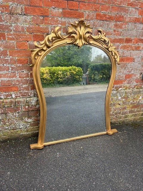 Stunning Large Antique English 19th Century Carved Wood & Gesso Shaped Gilt Overmantle Mirror