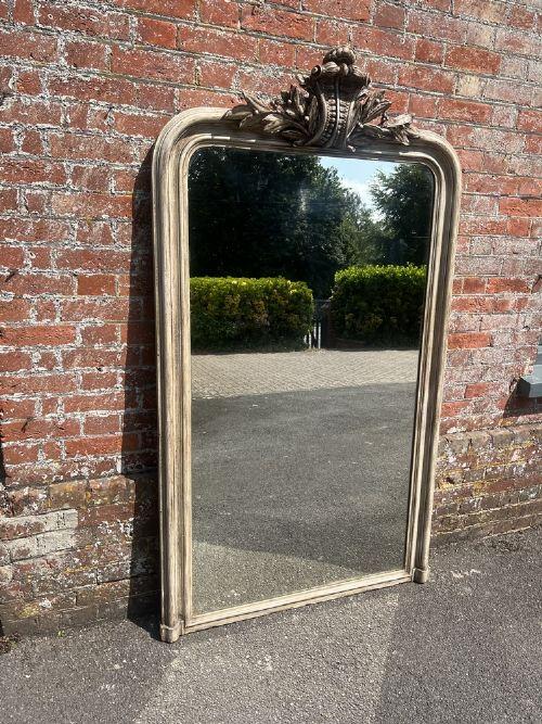 Stunning Large Antique French 19th Century Carved Wood & Gesso Arched Top Painted Mirror
