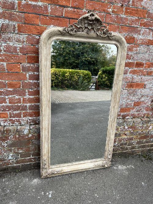 Stunning Large Antique French 19th Century Carved Wood & Gesso Arched Top Painted Mirror
