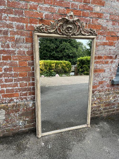 Stunning Large Antique French 19th Century Carved Wood & Gesso Painted Mirror