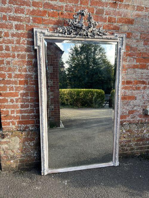 Stunning Large Antique French 19th Century Carved Wood & Gesso Painted Mirror
