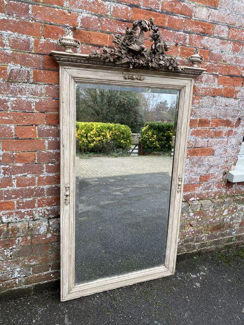 Stunning Large Antique French 19th Century Carved Wood & Gesso Painted Mirror