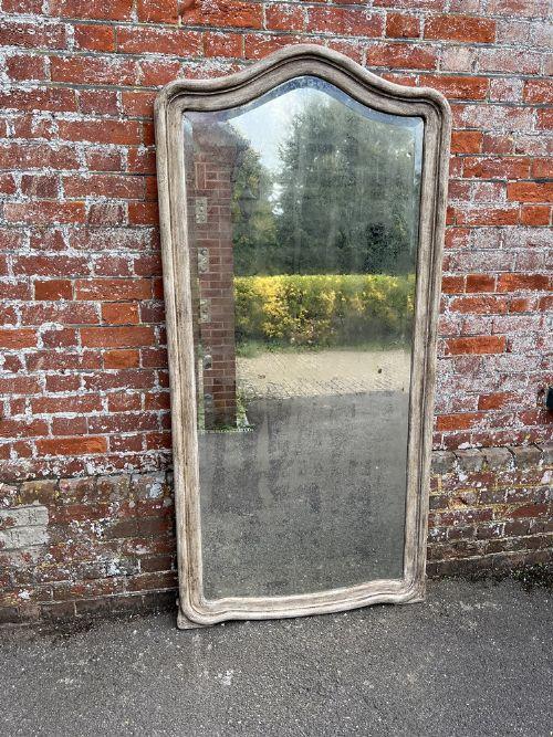Stunning Large Antique French 19th Century Carved Wood Shaped Top Painted Mirror