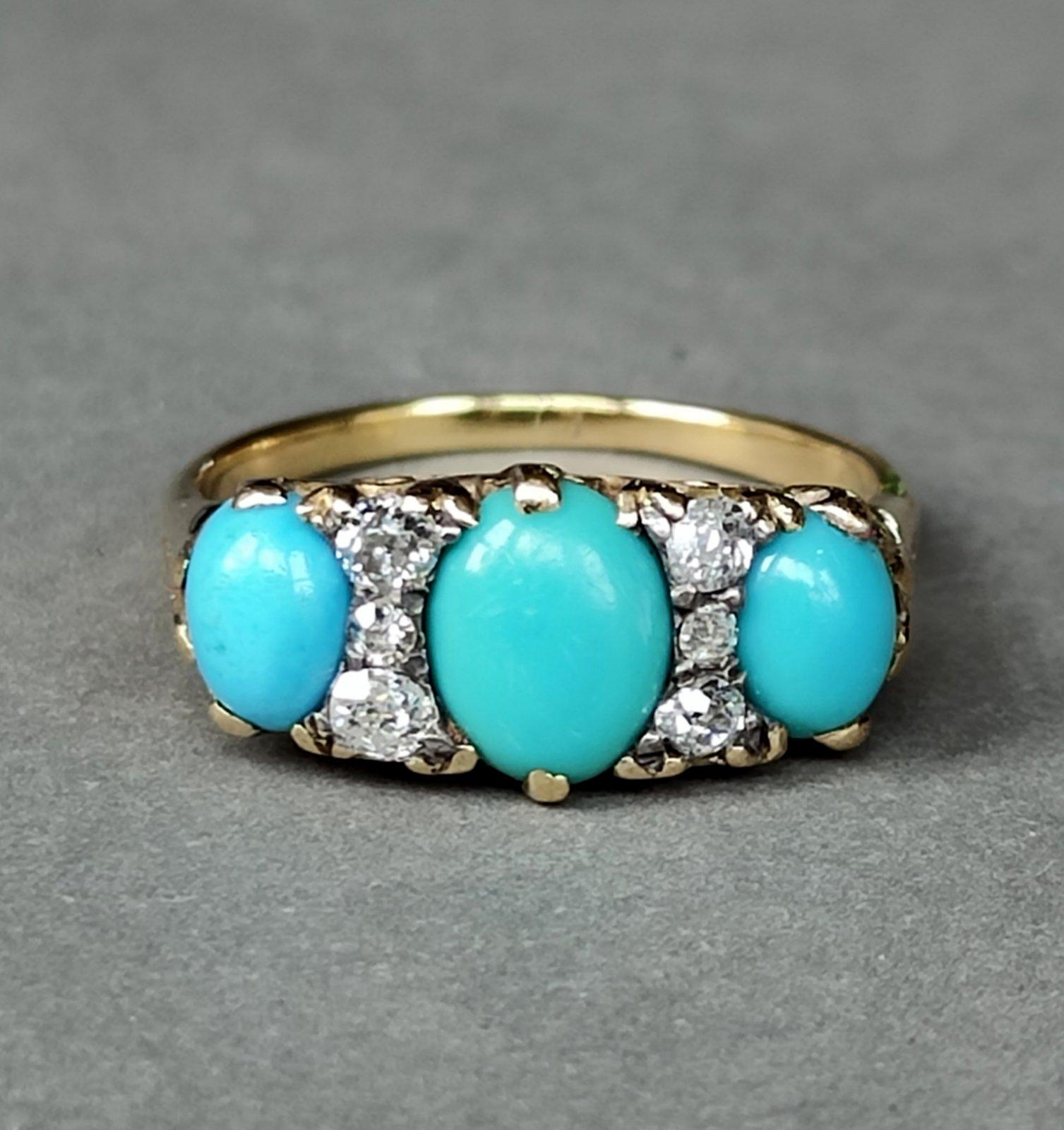Stunning Large Victorian 18ct Gold Turquoise Diamond Ring