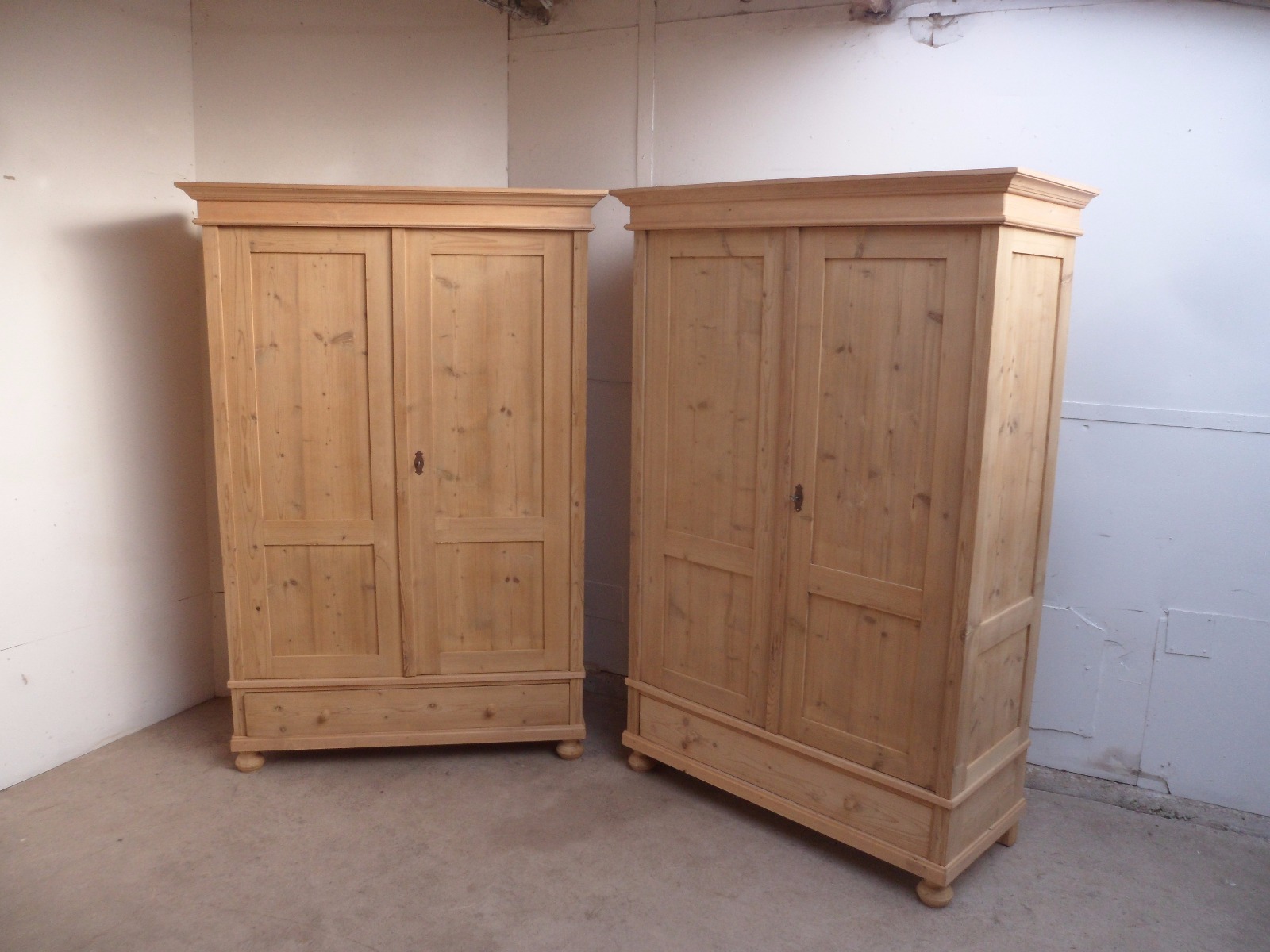 Stunning Matching Pair of Old Pine Knockdown Wardrobes to wax / paint
