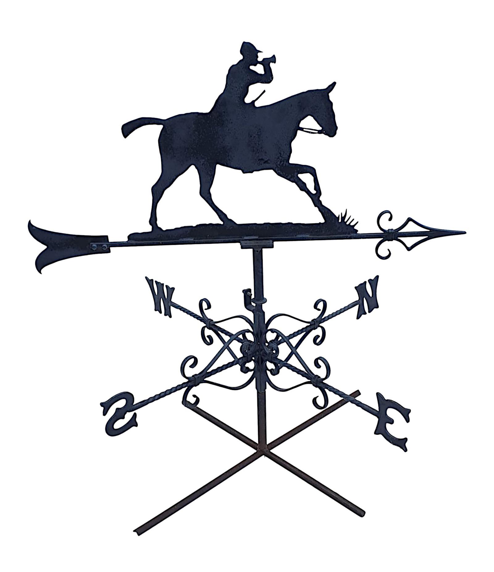 Stunning Mid 20th Century Forge Made Weather Vane of a Hunter on His Horse