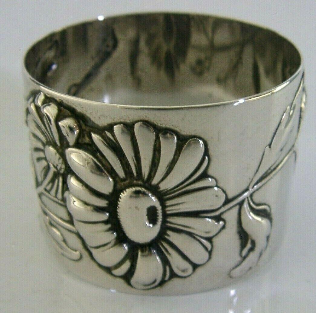 Stunning Norwegian Danish 830s Solid Silver Flower Napkin Ring Art Nouveau