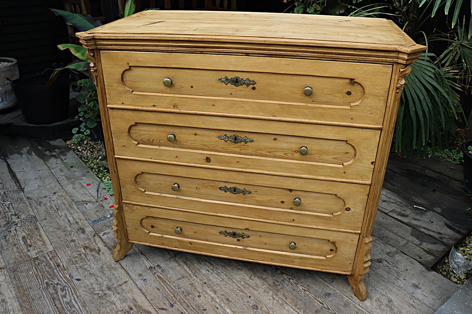 Stunning Old Pine Chest of Four Drawers/ Sideboard