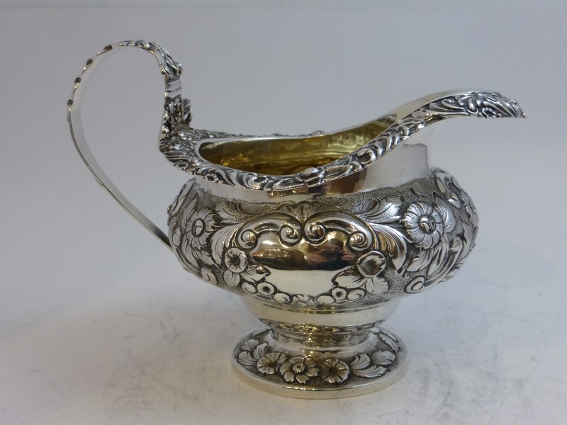 Stunning Ornate George IV Repousse Silver Cream Jug