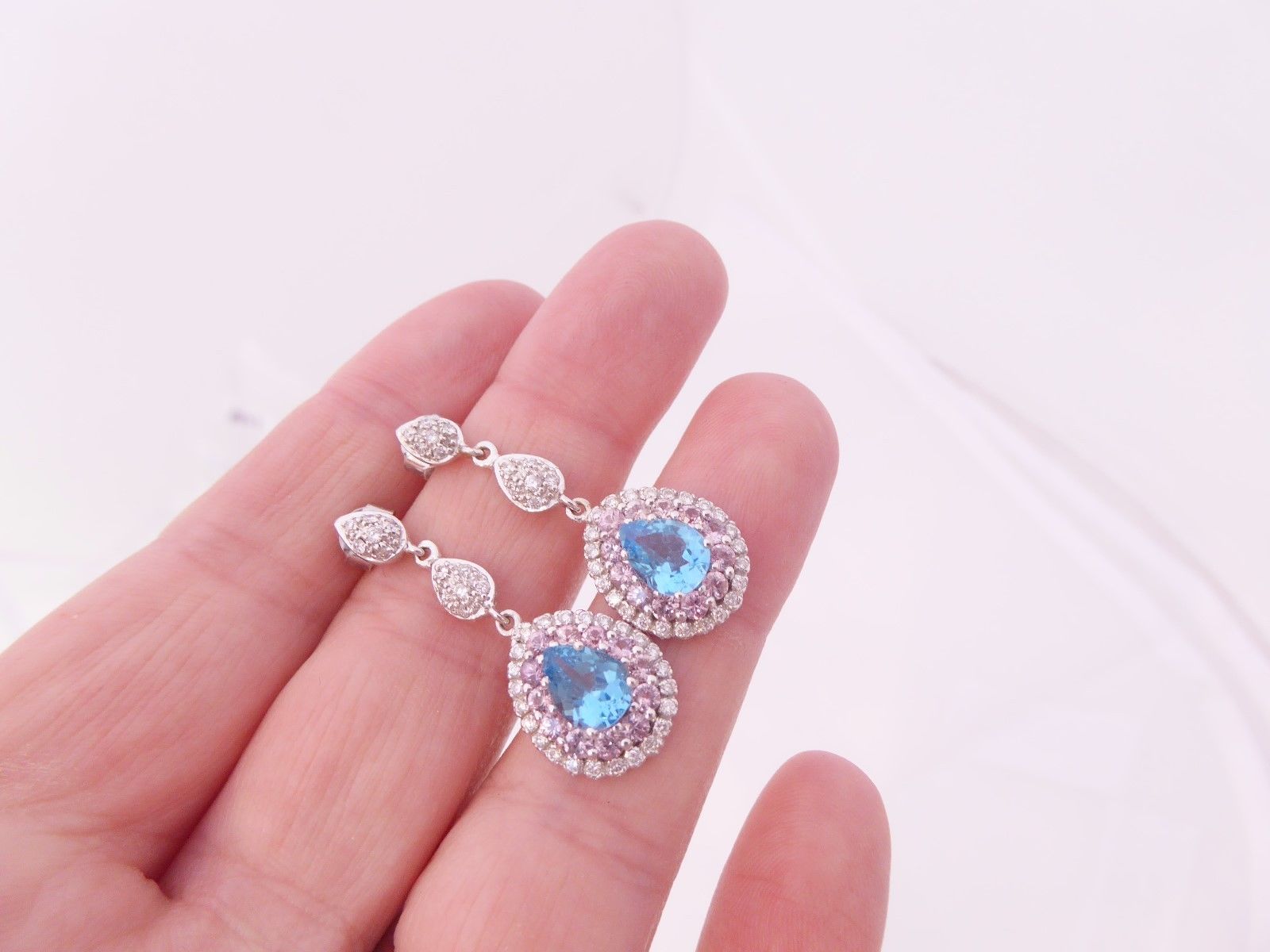 Stunning Pair of 18ct White Gold 2.8ct Topaz & 2ct Diamond Earrings