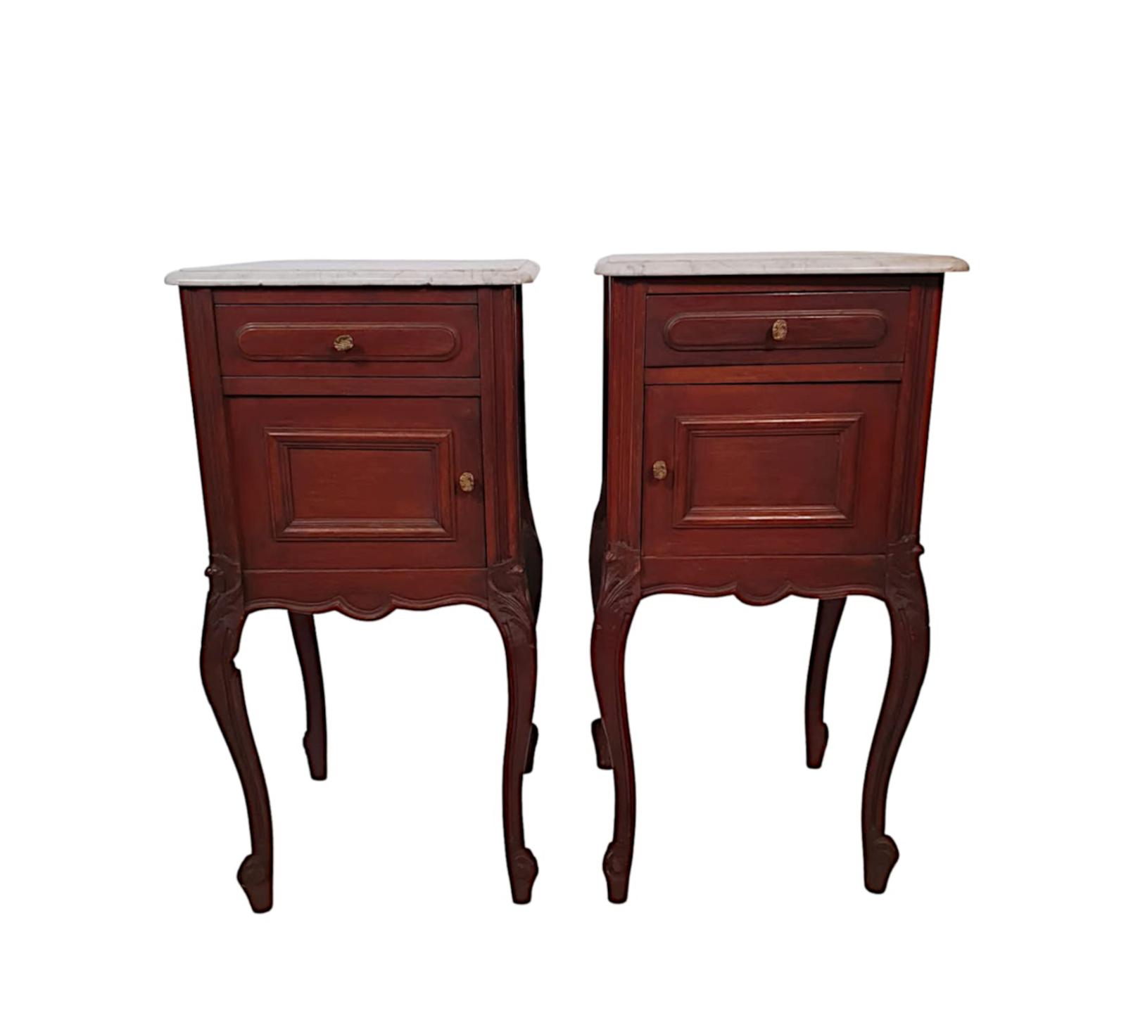 Stunning Pair of 19th Century French Marble Top Bedside Lockers