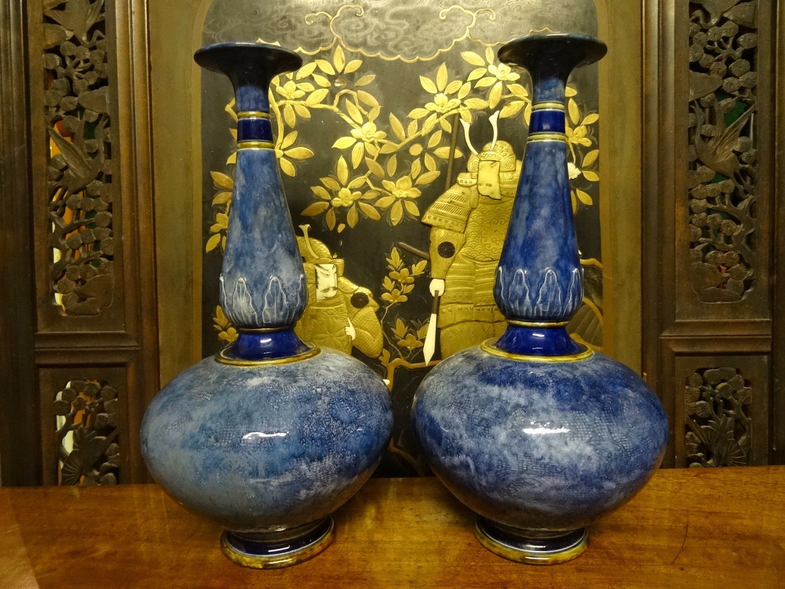 Stunning Pair of Antique Art Nouveau Royal Doulton Pottery Vases - Bulbous Shape