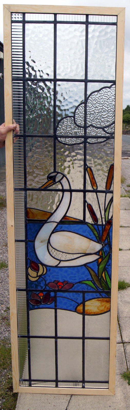Stunning Pair of Art Deco Windows Depicting Swans Swimming