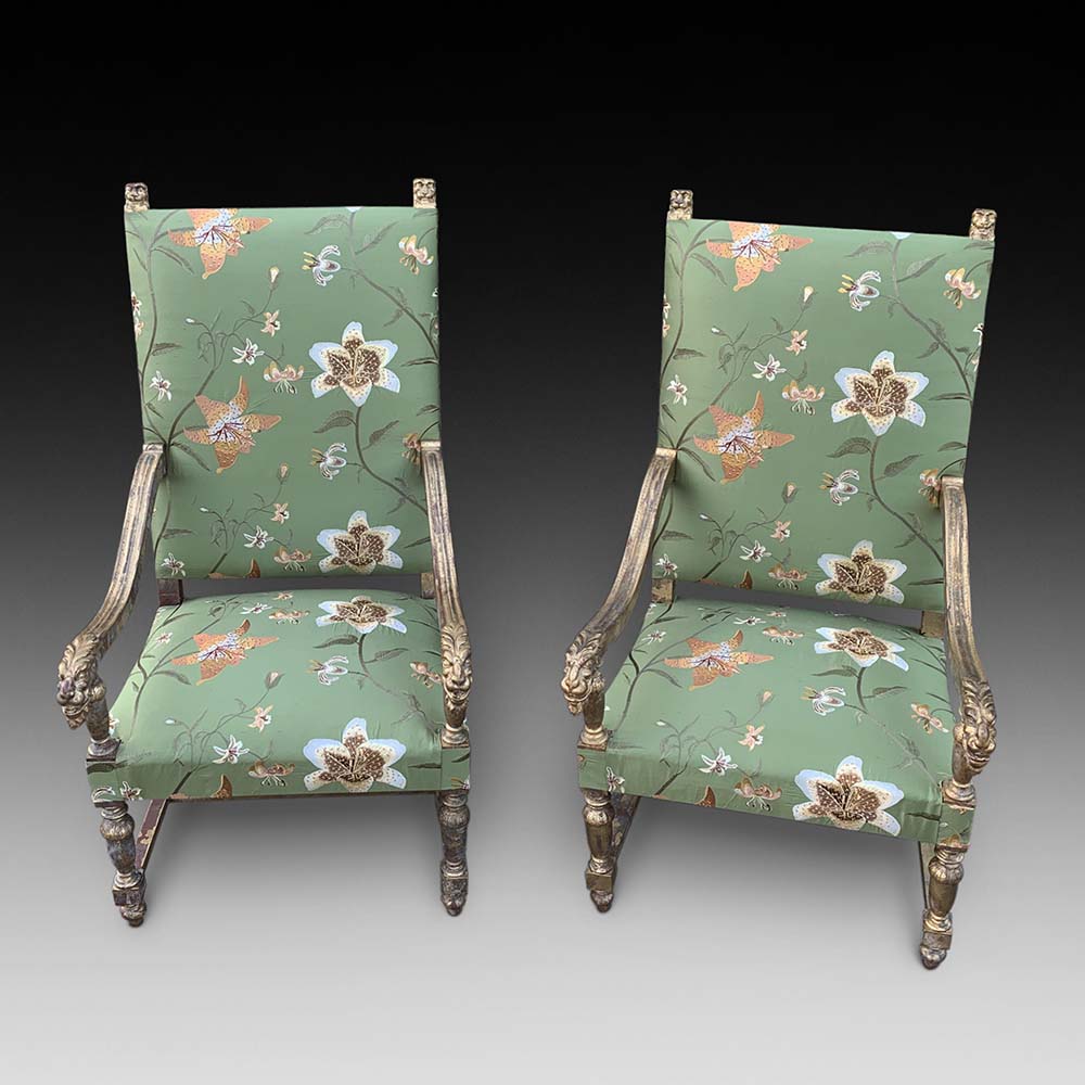 Stunning Pair of Distressed Gilt Framed Armchairs c.1850