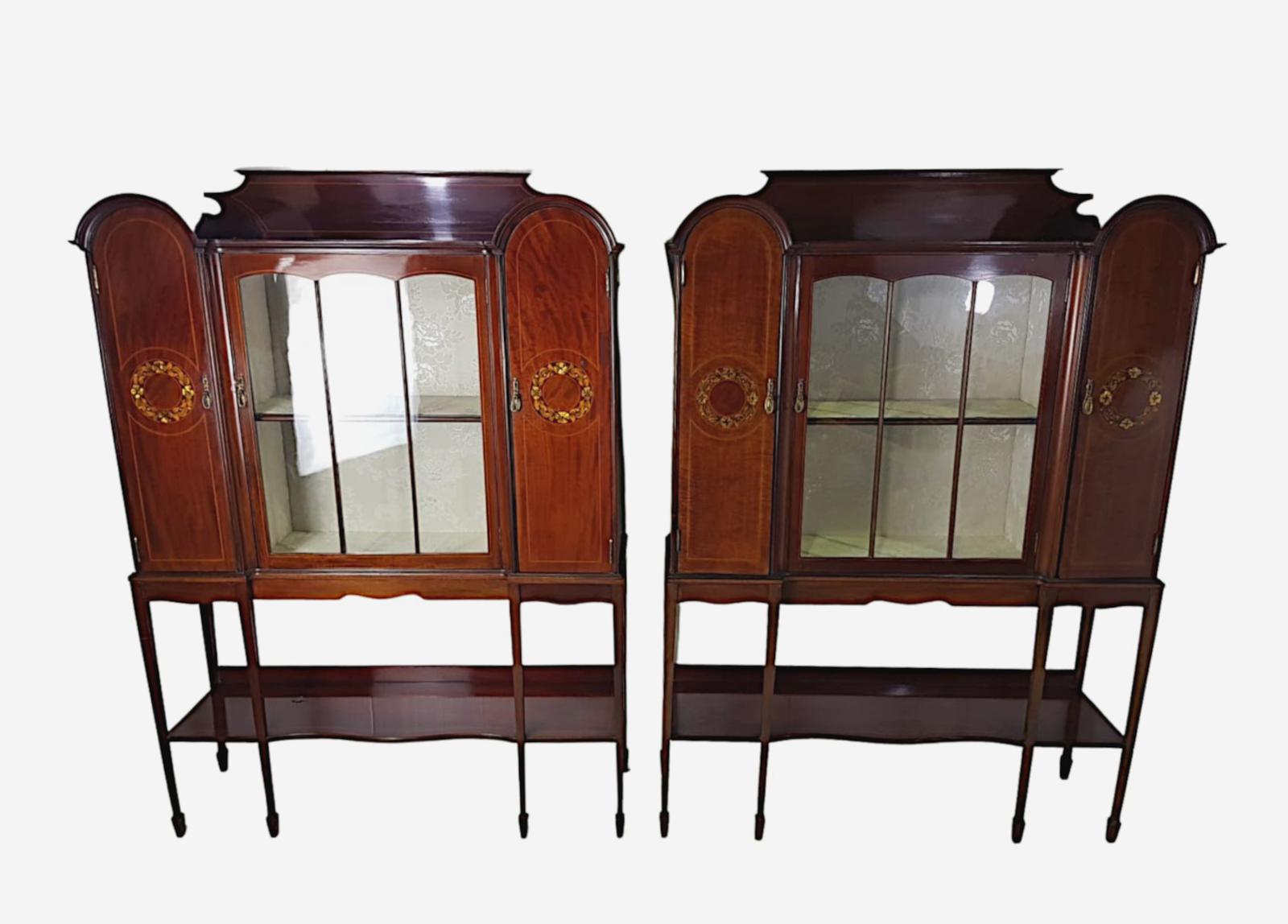 Stunning Pair of Edwardian Inlaid Mahogany Display Cases