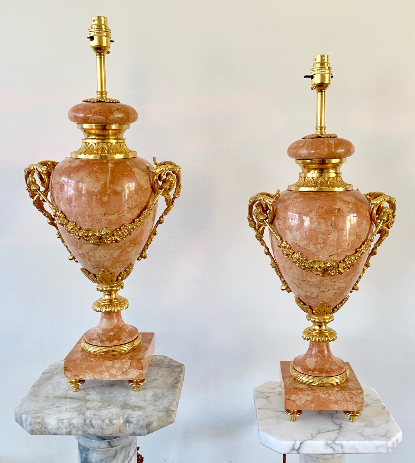 Stunning Pair of Elegant French Top Quality Marble & Ormolu Table Lamp