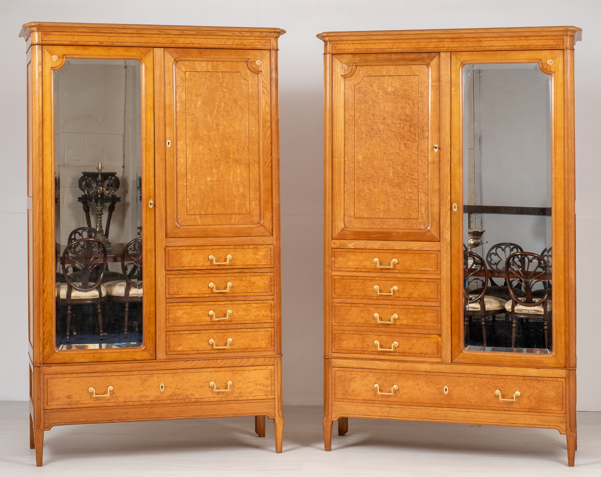 Stunning Pair of French "Birds Eye" Maple Wardrobes