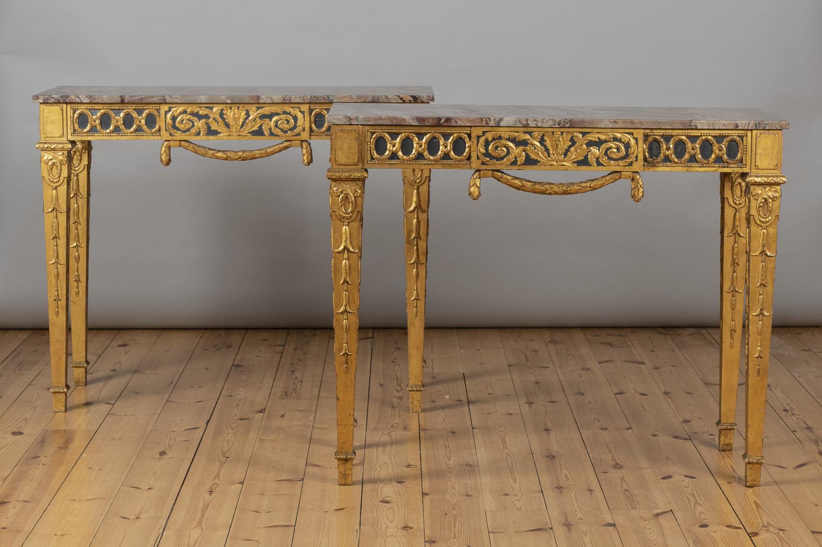 Stunning Pair of French Empire Style Gilt & Painted Console Tables