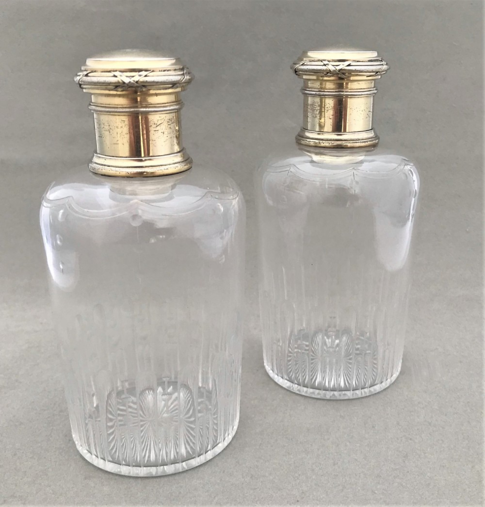 Stunning Pair of Parisian Silver Gilt Cologne Bottles