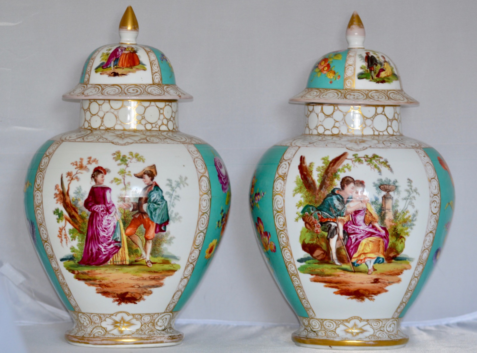 Stunning Pair of Substantial Late 19th Century German Dresden Porcelain Vases